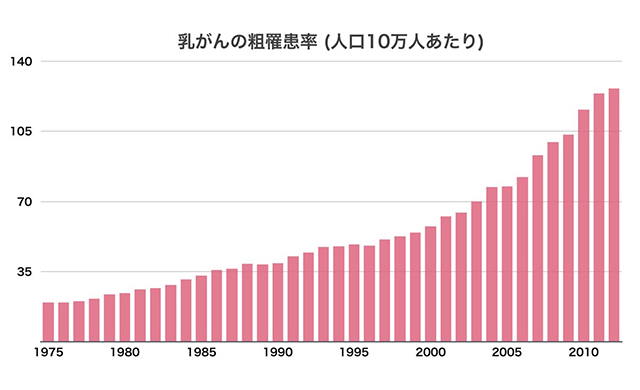 乳がんは年々増加しており、女性に発症するがんの中で最も多く、現在、日本人の約10人に1人の方が乳がんと診断されています。